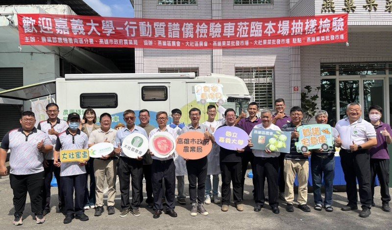 為強化果菜批發市場農產品抽樣檢驗的精準度,高雄市政府農業局攜手農業部農糧署與國立嘉義大學,將「質譜宅急便」行動質譜車巡迴快篩服務導入「燕巢果菜批發市場」,今(30)日正式啟動,為期兩週(每週三至五)提供現場快檢服務。農業局呼籲在地農民及市場供應商踴躍送驗,善用這項方便、快速又免費的檢測資源,共同守護高雄在地農產品安全。
