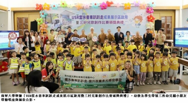 南華大學為展現大學社會責任(USR)在偏鄉教育的深耕成果,於10月31日在無盡藏圖書館舉辦「USR雲水書車趴趴走成果展示區啟用暨三好兒歌創作比賽頒獎典禮」。活動匯聚校內外教育夥伴、師生與社區代表,共同見證「雲水書車趴趴走-提升孩童多元感官學習」計畫的成果與影響力。典禮除宣告展示區常設展正式啟用,也表揚以音樂傳遞善與美的「三好兒歌」創作者,象徵知識傳播與品格教育融合的新里程碑。
