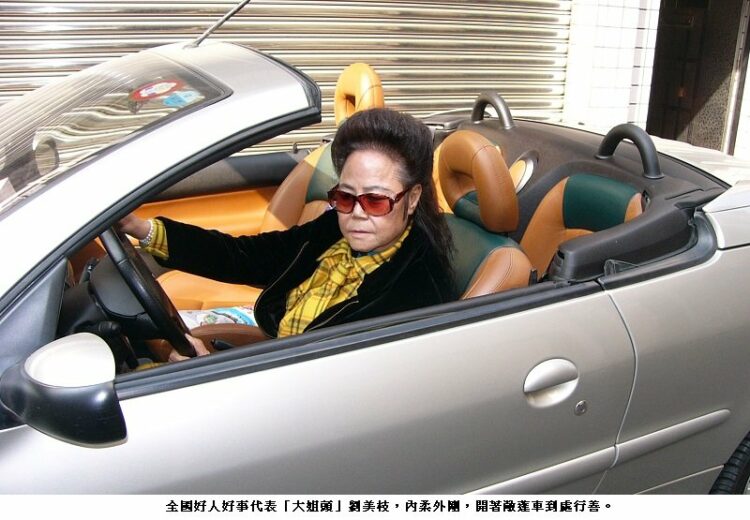 銀髮之年,她已可享清福,卻還是每天清晨7時就帶頭在自已的豬肉食品工廠工作到中午,午後就又一身「大姐頭」的裝扮,開著敞蓬跑車到到處去打聽有沒有她能幫忙的個案。