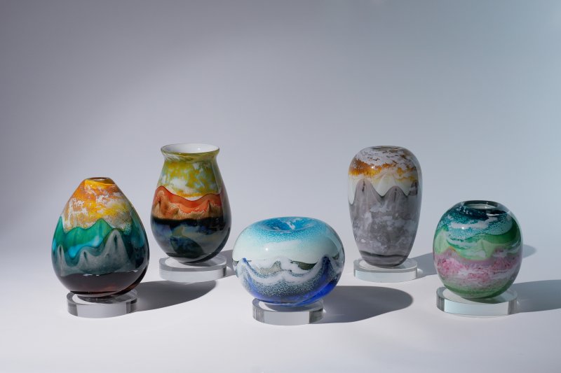 本屆得獎名單中,「工藝美術組」由紅琉璃有限公司作品〈山岳琉韻〉榮獲一等獎,以臺灣名山百岳為創作靈感,運用高溫吹製技法與多層色粉堆疊,搭配捲繞、剪接與平壓等手法,使琉璃在流動與凝結之間呈現山巒浮光掠影之詩性景致。「工藝設計組」一等獎則由謝承達作品〈方圓之間〉獲肯定,作品融合傳統塑革技藝與現代數位製造技術,在探索材質彈性與結構邊界中突破皮革物件既有形象,轉化為兼具文化脈絡與當代表現的革新創作,展現皮革工藝從手感走向設計思維的另一種可能。
