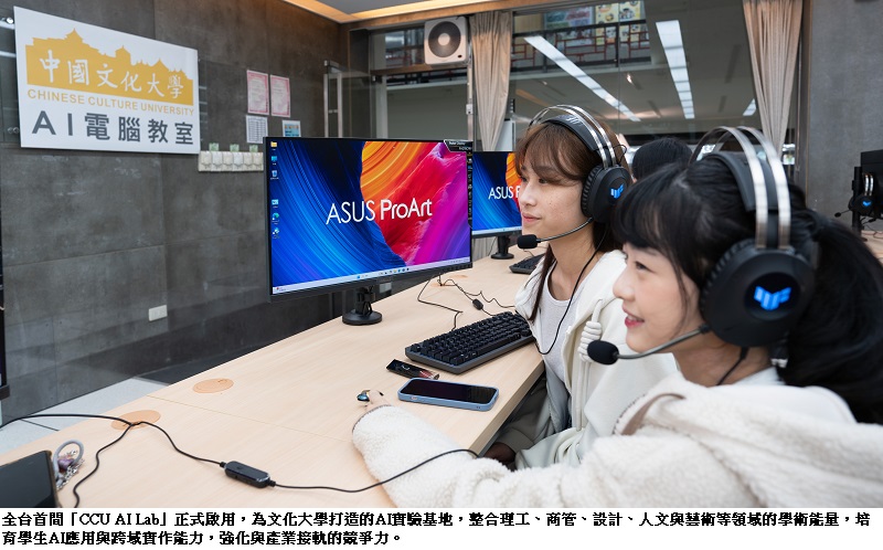 中國文化大學AI電腦教室於今(4)日揭牌啟用,並與華碩ProArt University校園創作者聯盟簽署合作備忘錄(MOU),打造全台首間「CCU AI Lab」。文化大學系所多元,建置的AI實驗基地,整合理工、商管、設計、人文與藝術等領域的學術能量,打造兼具教育深度與產業實務的創新平台。此舉象徵文化大學邁入AI跨域教育新里程碑,與華碩共創AI教育與產學合作新典範,培育兼具AI思維、人文素養與實作能力的未來人才。未來,文化大學將持續推動「CCU AI Lab」建置計畫,拓展AI學習場域,實現「人人可用AI、系系能創新」的教育願景。