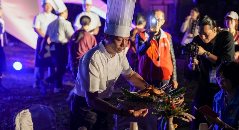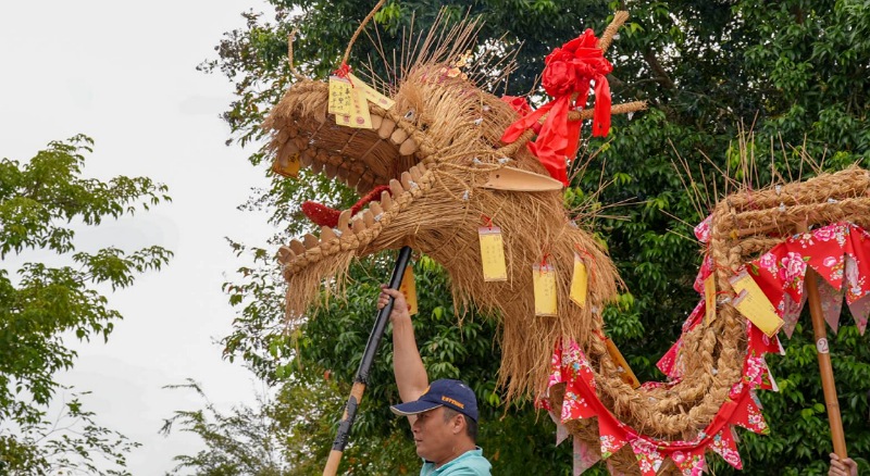 活動上午由雙潭社區發展協會主辦「雲火龍祈福儀式」,邀請居民以秋收後的稻草親手編織雲火龍與醉龍,象徵土地與信仰的連結。當日由臺中分署陳榮俊分署長親臨點睛,鼓聲與火光交織,照亮山谷夜色,也點燃社區延續傳統的熱情。居民與遊客共同祈願,感受在地信仰文化的真摯力量。