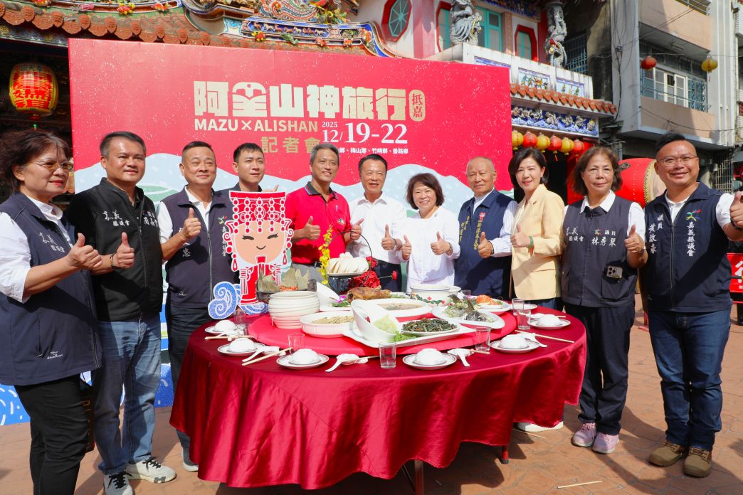 為推廣嘉義山海觀光、結合信仰文化與在地產業,交通部觀光署阿里山國家風景區管理處與財團法人嘉義縣新港奉天宮攜手合作,精心策畫「阿里山神旅行抵嘉」活動,今(4)日在新港奉天宮廟前廣場舉辦宣傳記者會,嘉義縣長翁章梁、嘉義市長黃敏惠、立法委員蔡易餘、王育敏及各級民意代表等貴賓共同出席,見證此次活動開跑。