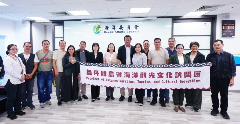 圖/菲律賓巴丹群島省省長一行拜會海洋委員會(左起第7位為科技文教處林麗英處長、第8位為海洋委員會黃向文副主任委員、第9位為巴丹群島省省長Ronald P. Aguto, Jr.,右起第3位為馬尼拉經濟文化辦事處高雄分處長Ma. Karina B. Perida-Trayvilla,第6位為原住民族文化事業基金會董事長瑪拉歐斯)