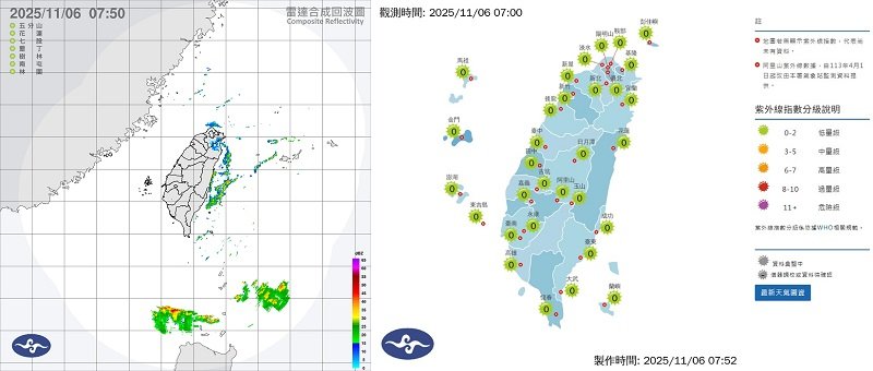 紫外線指數方面,各縣市皆為中量級到高量級。