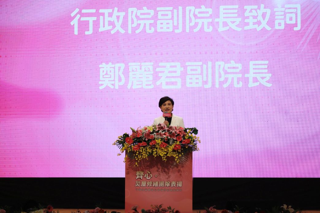 行政院副院長鄭麗君、陳金德政務委員今表揚廠商,鄭副院長肯定地方政府及指揮所團隊的努力,並表示每一片修復的屋頂,背後都是大家的辛勞與善心,不分晝夜投入復原,要代表行政院獻上最深的感謝。