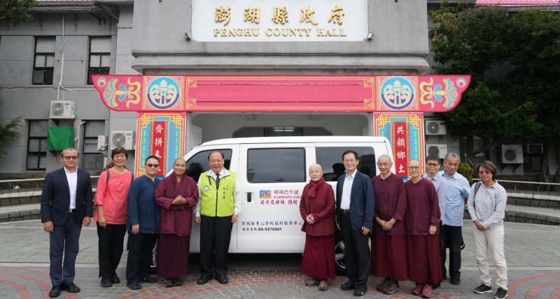 新北市波卡度母林佛學會展現深厚的社會關懷,捐贈澎湖縣身心障礙服務者交通服務車 1 輛。今(7)日由波卡度母林佛學中心住持蘇南法師、吳嘉真執行長及澎湖珍寶度母林中心常住殿淨法師,特地跨海來澎親自致贈,並由縣長陳光復代表接受。