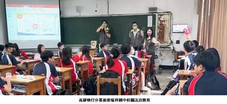 為深化青少年反詐意識及法治觀念,法務部行政執行署高雄分署(簡稱高雄執行分署)校園法治教育列車於11月6日前往高雄市瑞祥國中,與國一新生進行一場兼具趣味性與教育意義的「反詐宣導與模擬動產拍賣競標活動」。此次活動融合行政執行法治教育、打詐宣導與經濟體驗,藉由互動式教學方式,讓學子們認識公民責任及瞭解詐騙手法,並體驗行政執行制度的實務運作。