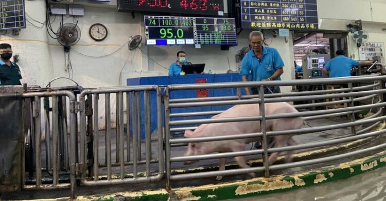 農業局指出,今日高市四大肉品批發市場毛豬拍賣總量達 4,573頭,因須消化禁運禁宰前各豬場滯留豬隻,較平日增加約3成。整體交易均價,不但比去年同期價格增加,甚至略高於先前缺豬調節時的價格,顯示國人對本國內溫體豬肉的支持及喜愛。此外,市場也持續按照中央規定落實相關防疫指引,對進出車輛與場區清潔消毒,確保防疫安全與作業順利。