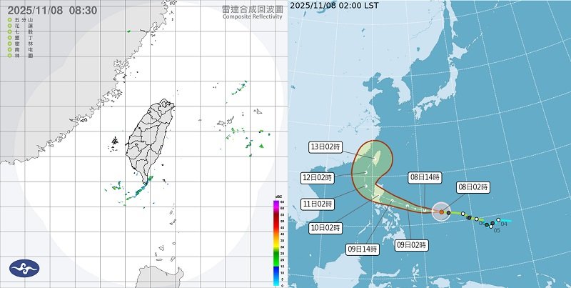 至於下週四颱風減弱並遠離,不過水氣仍多,北部、宜蘭地區及恆春半島有短暫陣雨,其他地區有局部短暫陣雨,惟颱風的強度及路徑不確定性大,對降雨的影響仍需密切觀察。