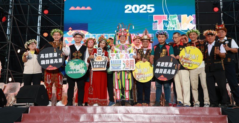 高雄擁有全國最完整的16族原住民族豐富文化資產,「2025 TAKAO豐潮」原住民族聯合豐年節,創歷年規模最大,於衛武營隆重登場,市長陳其邁今(8)日身穿傳統服飾,與立法委員邱議瑩和賴瑞隆,以及市議員高忠德、陳幸富、范織欽與黃文益一同參與盛會,並加入千人圍舞行列,與林信明總頭目、各同鄉會頭目耆老及族人等,隨著音樂節奏手舞足蹈,高呼「TAKAO豐潮」,氣氛熱烈歡騰。