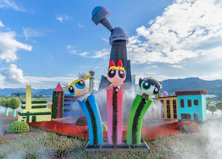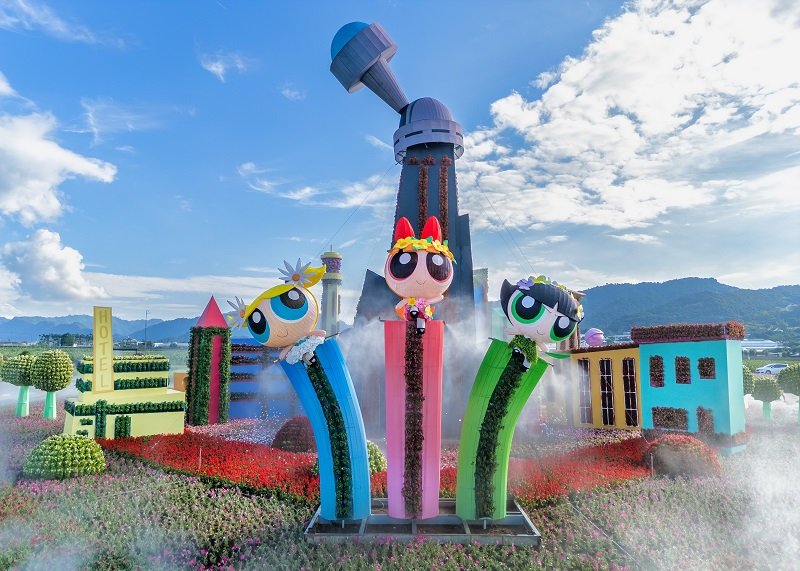 台中市政府觀旅局表示,花毯節現場共有15個裝置及角色立牌,為歷年最多;主花毯規模也是歷屆最大,高18公尺、直徑60公尺,其中以魔人啾啾的基地為裝置的最高點。每隔半小時自動展演一次的泡泡、水霧與機械動態效果,搭配盪鞦韆、甜甜圈店等裝置,處處充滿驚喜。現場呈現飛天小女警的家以及市政廳等經典場景,民眾也能與花花、泡泡、毛毛、尤教授、小鎮村市長以及會說話的狗等經典角色裝置拍照,甚至有機會看到粗暴小子、阿米巴幫、壞死幫派還有「他」等反派角色立牌,讓大小朋友玩得盡興。