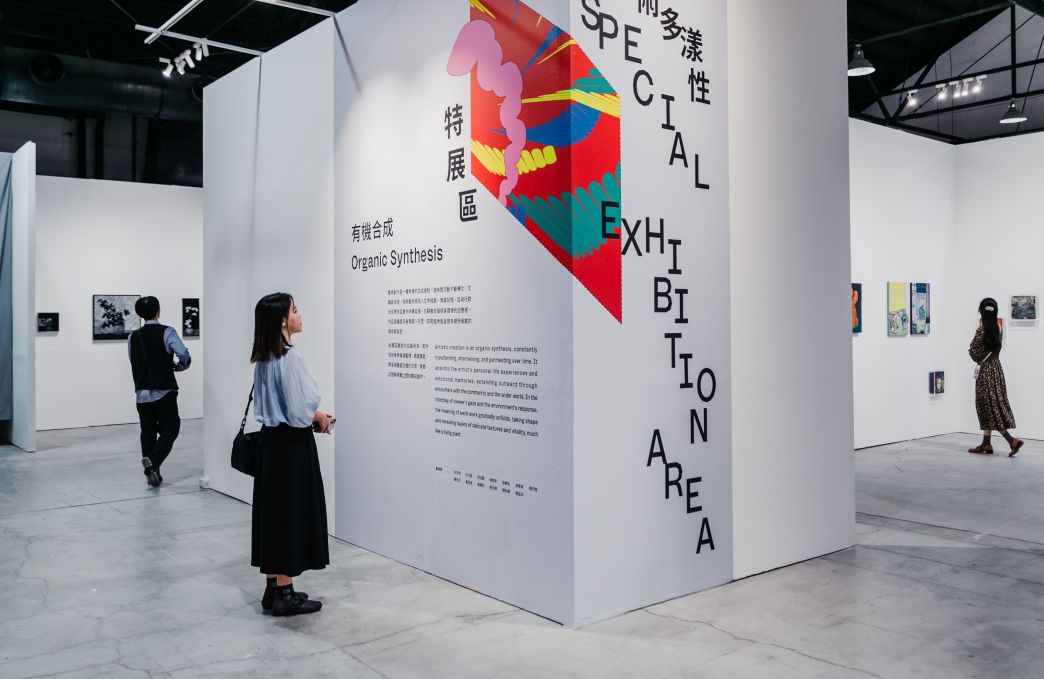 2025高雄漾藝術博覽會共有兩大展區,「藝術新銳區」以徵件評選方式展出35位入選藝術家,以獨立展間的形式自由呈現個人創作風格,媒材、主題不設限,展現新鮮的視覺語彙;「藝術特展區」邀請曾參展漾藝博且表現優異、或曾獲高雄獎殊榮等13位藝術家參與,以「有機合成」為策展主軸,細膩呈現藝術創作如同植物般有機的生成過程,吸納了生命經驗、情感記憶、與世界的交流互動,交織出精彩創作。