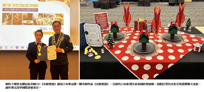 樹科大餐烘系陳鈺茹師《光樹聖誕》創意口布 2025釜山技能人賽奪金 1141117