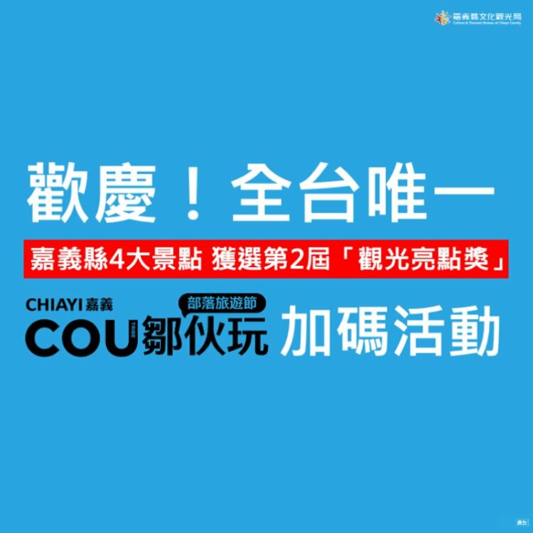 嘉義縣4大景點獲「觀光亮點獎」 12/6-12/7部落旅遊節推限時加碼抽大獎