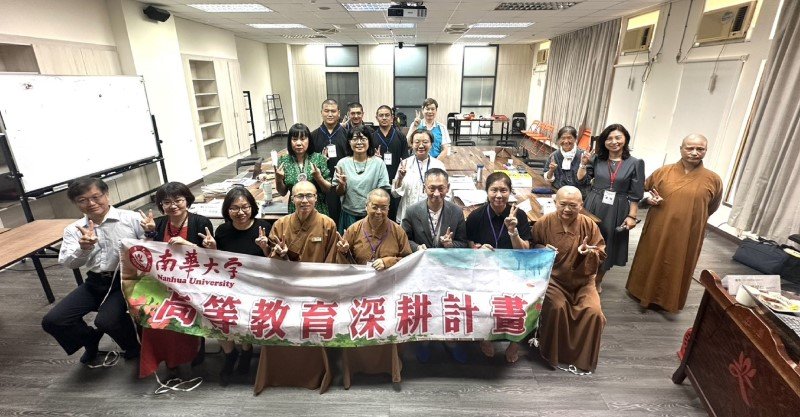 圖/南華大學辦理「人間佛教學術講座經典系列」第四講,邀請法鼓文理學院佛教學系副教授兼系主任鄧偉仁(前排右3)主講。會後大合照。