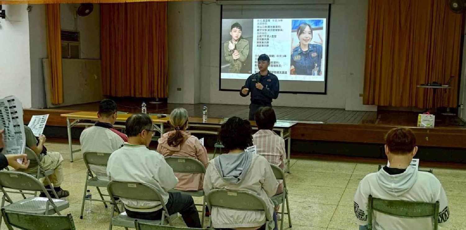 除了防身術訓練,三位憲兵弟兄也向社區居民介紹憲兵軍種的角色與任務,包含維護軍紀、重要目標警戒、反滲透偵查與支援災害防救等,讓隊員們對憲兵的專業與責任有更深入的認識。課程尾聲,憲兵隊亦進行招募宣導,吸引多位青年家長與民眾興起興趣,熱烈詢問相關資訊。