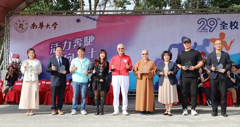 南華大學114學年度「活力奔馳‧邁向三十」全校運動會於今(26)日活力登場。為增添運動會開幕儀式的精彩度與現場熱度,特別將每年最受矚目的「三好啦啦舞」決賽,安排於開幕式展開,學生們以滿滿的熱情展現青春洋溢的活力與三好精神,全場歡聲雷動,也為運動會揭開精彩序幕。該校藤球隊於日前藤球錦標賽中勇奪1金2銀之佳績,隊長余鎧丞藉此盛會代表全體隊員將此殊榮呈獻給學校,全校師生相當歡喜亦與有榮焉。此外,今年亦首度於運動會頒發「傑出校友證書」表揚 9 位傑出校友。