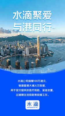 北京2025年11月28日 /美通社/ — 11月26日下午,香港大埔宏福苑火災,災情牽動社會各界。11月27日,水滴公司宣佈捐贈100萬港元,緊急馳援香港大埔火災救援,助力受此次火災影響的居民共渡難關。