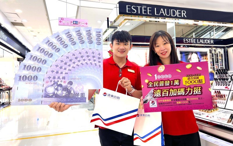 全民普發1萬遠百加碼力挺,即日起至十二月三十一日止,遠百APP金級會員於全館當日消費滿1萬元送HAPPY GO點數1000點,搭配既有的感恩禮讚滿千送百或銀行卡友禮,回饋率再往上堆疊,讓您的普發萬元瞬間「放大」成超值驚喜的購物金!