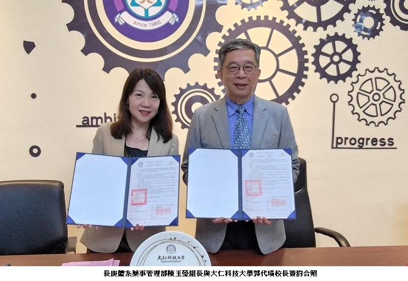 長庚醫療財團法人行政中心與大仁科技大學藥學系今(1)日正式簽署合作備忘錄(MOU),宣示雙方將在藥學教育、臨床實務訓練、研究交流與人才培育方面展開更緊密的合作。此次簽署儀式在大仁科技大學舉行,由長庚體系藥事管理部陳玉瑩組長與大仁科技大學郭代璜校長簽約,會後陳組長以「如何在趨勢中找到藥師的角色與價值」為題,進行專題演講與大仁科大學生分享醫療變革下藥師專業的嶄新定位與發展藍圖。