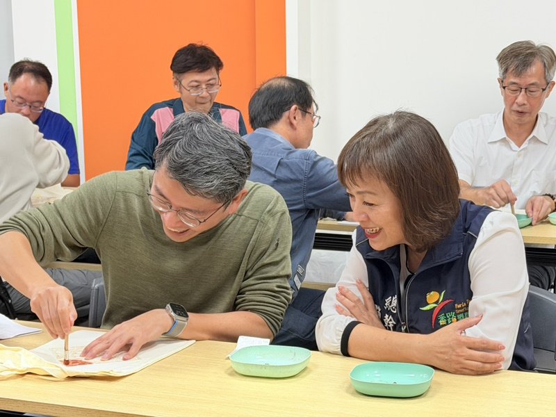 此次研習活動由各校校長親自帶隊,教師們走進番路鄉農會「飲冰柿茶集」展售中心與食農體驗教室,從牛心柿、茶葉到各式加工產品,深入了解番路特色農產的發展脈絡。研習中的亮點「柿袋相傳」更讓教師們親手體驗柿染創作,原本僅打算完成一件作品的老師們,在實作中紛紛投入創意,對番路農產的多元應用感到驚喜,更有多位教師直接預約日後希望帶學生體驗,將在地文化融入課堂教學。