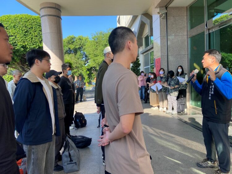 蔡尚武表示,本梯次役男在陸軍步兵117旅(黃埔營區)接受基礎入伍訓練,訓練合格分發部隊服役,若鑑測不合格將留訓一週補測,再分發至部隊;懇親會預於12月13日實施,欲參加家長須備齊相關證件辦理懇親會客。