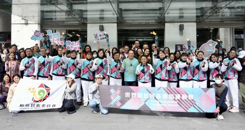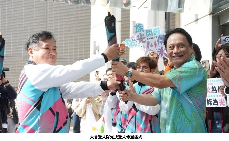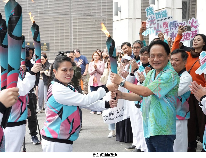 「2025世界原住民族傳統運動會」的聖火自11月27日由屏東縣起跑,經過39個原鄉後,今(4)日聖火隊伍抵達位於新北市新莊聯合辦公大樓的原住民族委員會。原民會曾智勇Ljaucu‧Zingrur主委親自率領同仁熱情迎接,從傳遞人員手中接過象徵原住民族精神與團結的聖火,並預祝後續傳遞行程平安順利,賽事圓滿成功。