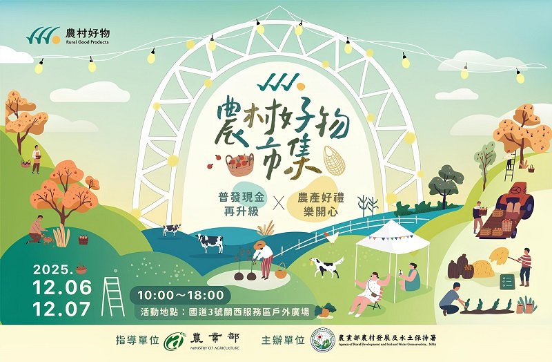 2025農村好物市集將於114年12月6日至7日在國道3號關西服務區熱鬧登場,活動為期2天。這次市集由農業部農村發展及水土保持署號召全臺各地農村社區優質業者共同參與,打造年度最「接地氣」的農特產盛典。現場集結41家農村好物與農村社區業者,販售蜂蜜、果乾、特色零嘴及小農加工品等多元品項,讓旅客停下腳步,一次網羅來自臺灣農村社區的好味道,把農村好物帶回家。