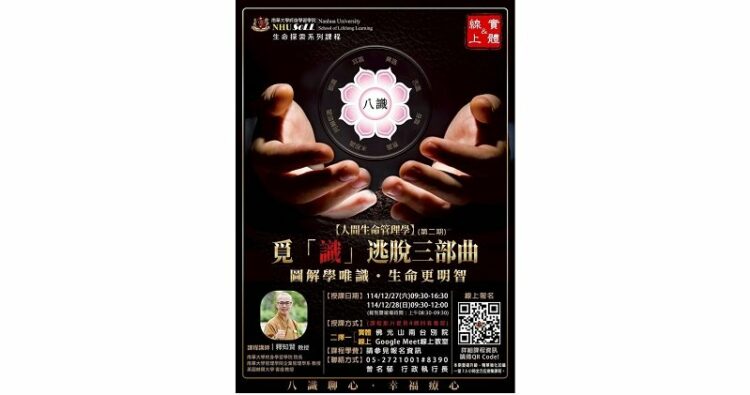 南華大學推《人間生命管理學》第二期 釋知賢教授帶領探索八識奧秘