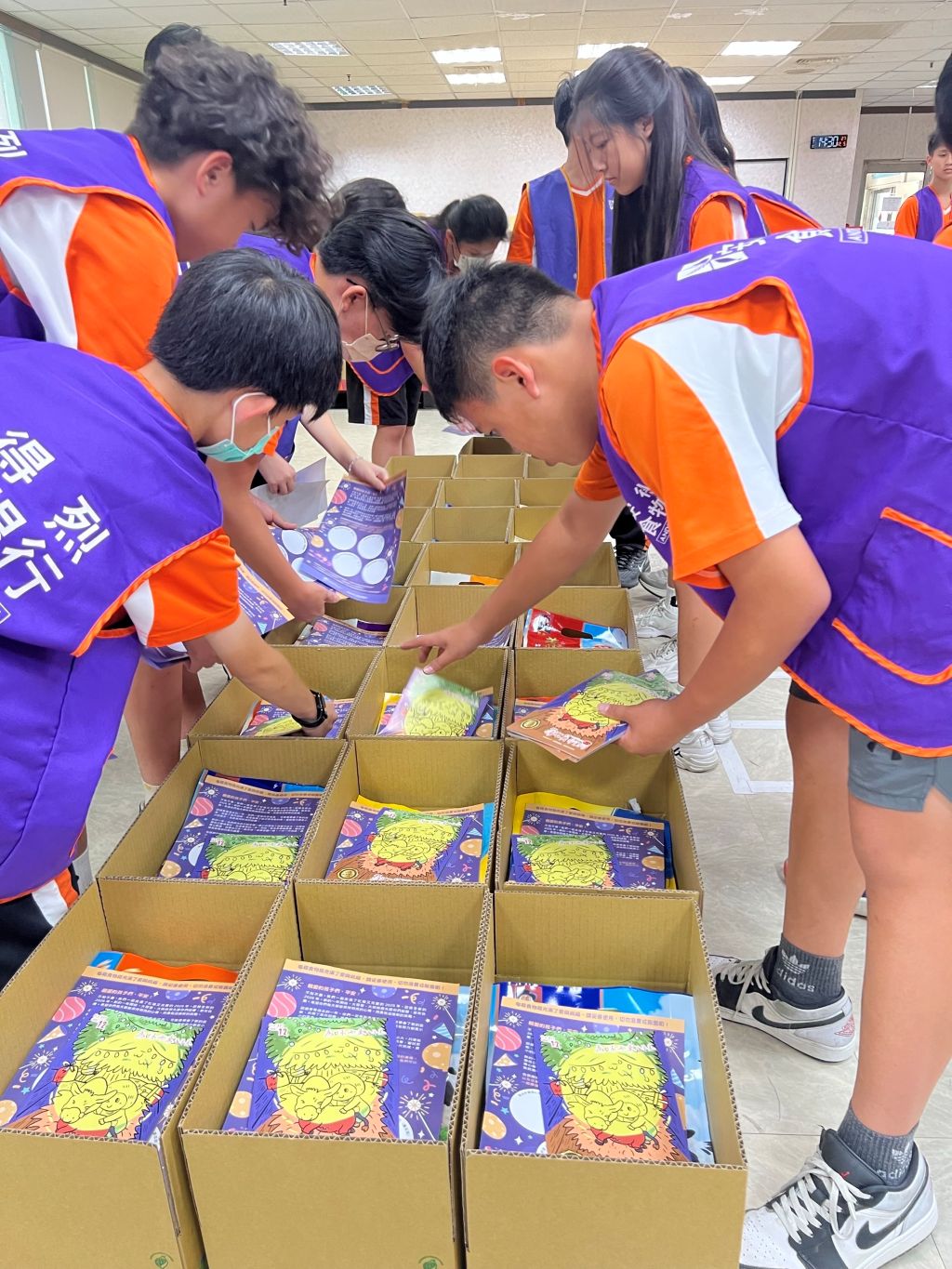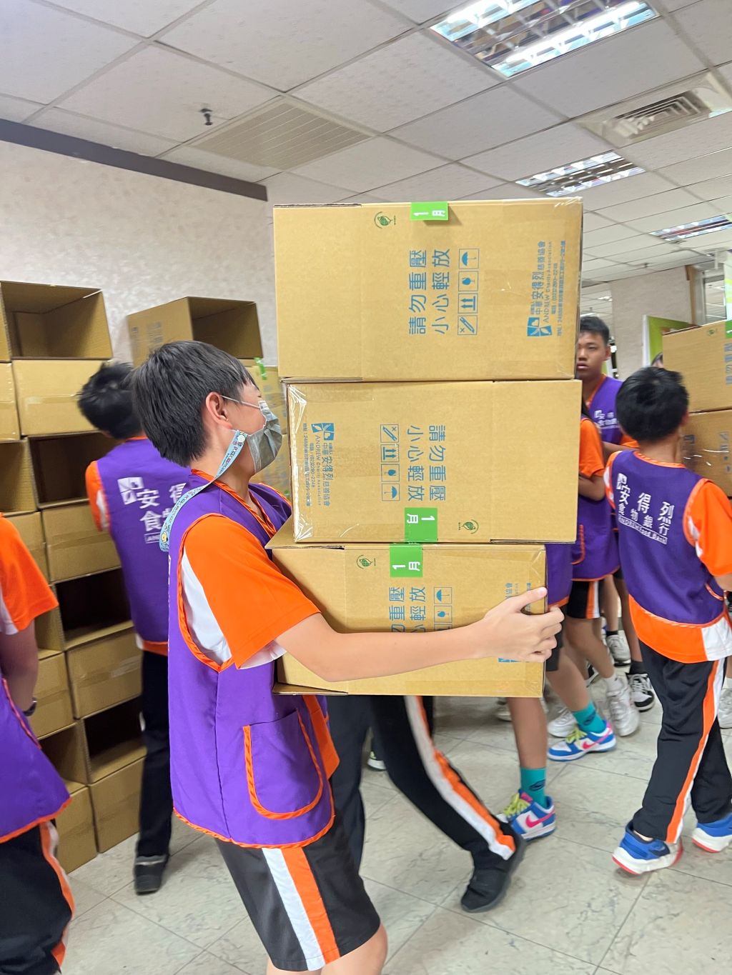 在實作環節中,學生們依照標準流程完成50箱食物箱的包裝作業。每項物資均需按照規範擺放,以最大化箱內空間利用。學生們透過分工合作,體會到每個食物箱背後都包含細緻、嚴謹且充滿愛的付出。