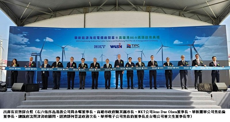臺灣港務股份有限公司與華新麗華股份有限公司今(6)日共同舉辦「華新能源海底電纜廠開幕暨高雄港A6-A碼頭啟用典禮」,象徵南臺灣離岸風電產業鏈發展再度往前邁進,也為臺灣綠色能源產業寫下重要里程碑。港務公司在配合政府能源轉型政策上,積極推動離岸風電產業鏈佈局,透過整合洲際一期貨櫃中心A6場域逾30公頃土地並配合產業需求辦理高雄港洲際一期A6碼頭護岸及新生地填築計畫,斥資新臺幣30億元興建2座荷重30噸重件碼頭,奠定高雄港成為離岸風電國產化供應鏈的核心基地。