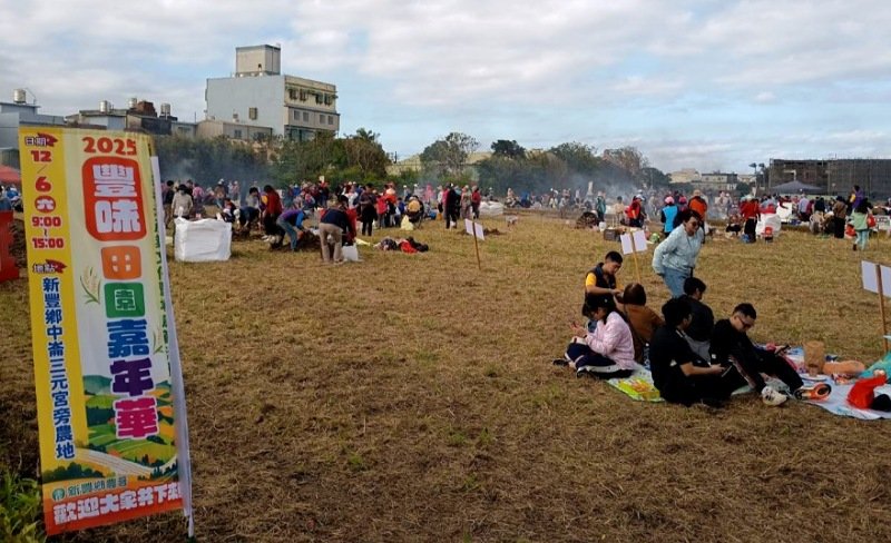 新竹縣「新豐鄉114年稻米產業文化暨地瓜節—豐味田園嘉年華」今(6)日在新豐鄉中崙三元宮旁農地熱鬧舉行,活動以教育、文化、體驗與觀光推廣為核心,打造一場結合農村產業、親子互動與節慶氛圍的年度活動盛典,千人齊聚焢窯,享受農村樂、品嘗幸福農村味。