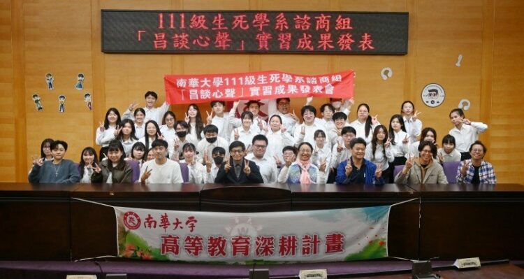 南華大學生死學系諮商組於日前在高教深耕計畫的支持下舉辦「111級生死學系諮商組『昌談心聲』實習成果發表會」。發表會匯聚該系師生、校內師長及實習機構代表,一同見證37位諮商組實習生在25個不同實習場域機構中累積的學習成果。