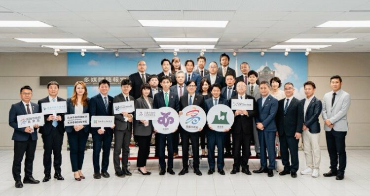 圖/陳其邁昨(8)晚第一時間即指示行政暨國際處向友好城市窗口聯繫,表達高度關切與慰問,並於今日上午正式致函青森縣知事宮下宗一郎及陸奧市市長山本知也,表達對震災的關心,圖為今(2025)年10月份共同簽署友好交流協定合影。