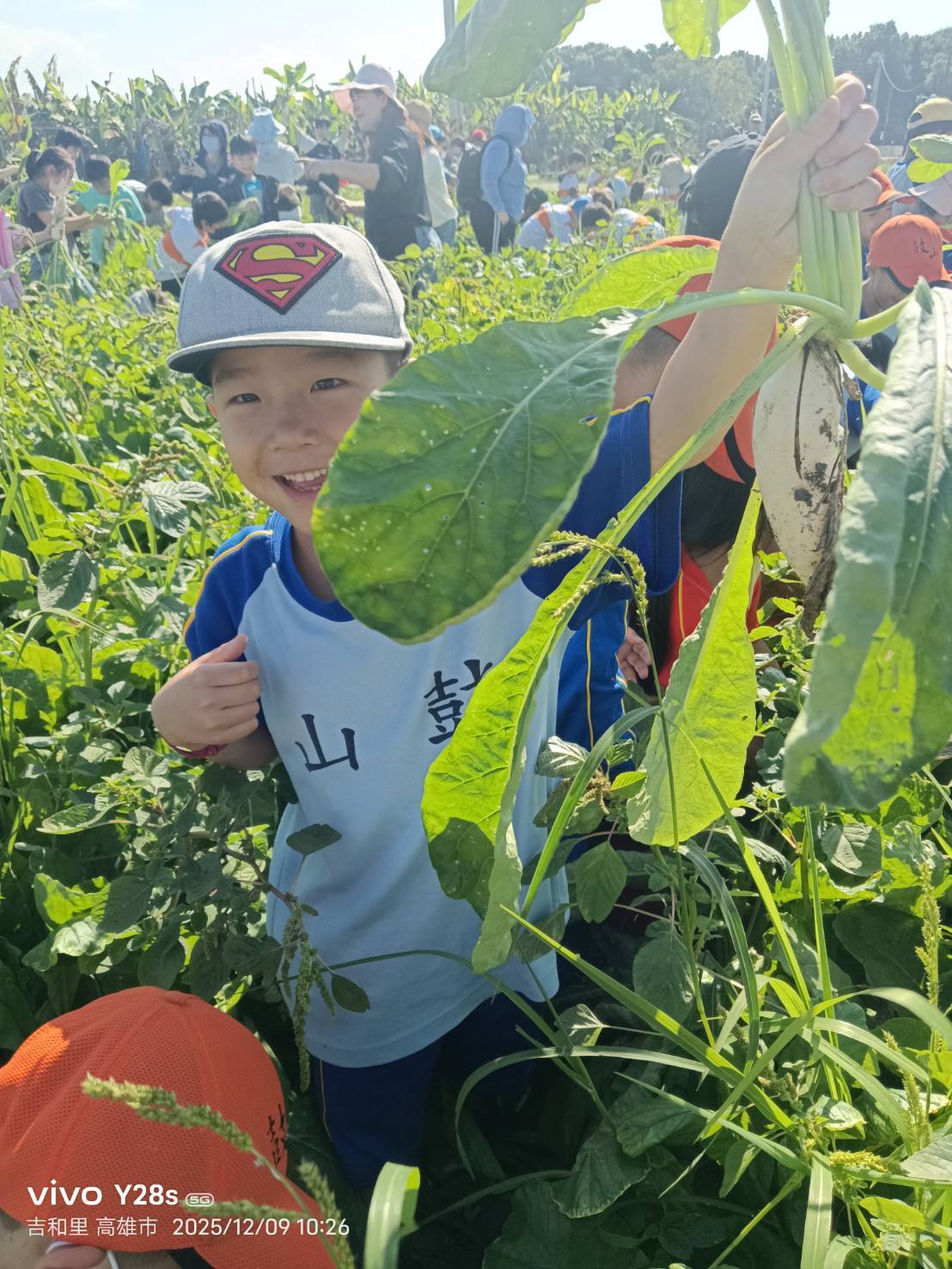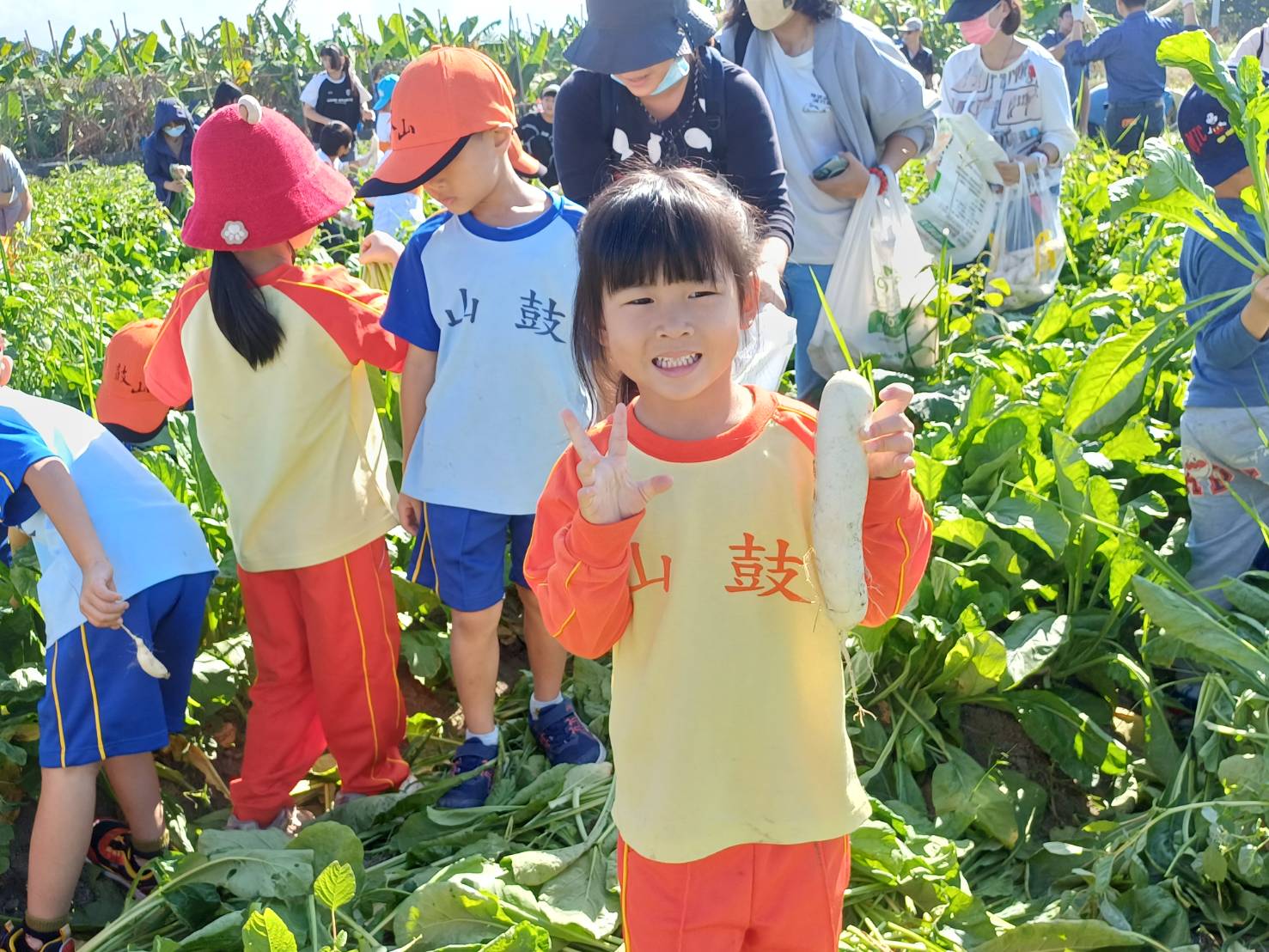 高雄市鼓山區鼓山國小於今天(9日)受邀至月光山下的美濃區吉洋國小進行『《城鄉交流新體驗》-食農教育白玉蘿蔔季課程成果發表會』,在二校校長的帶領下,吉洋國小全校師生與鼓山國小參訪師生一起下田,並邀請兩校家長會、志工團一同參與,共同體驗食農教育辛苦栽種後歡慶豐收的魅力。
