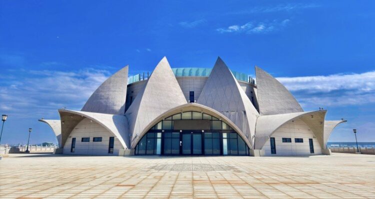 圖/大安港媽祖文化園區基座外觀以白海豚環繞媽祖為意象打造