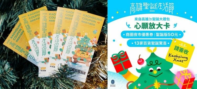 高雄市政府經發局同步攜手全市13家百貨公司,推出限定回饋活動「心願放大卡」。民眾於12月20日至24日可在活動現場領取卡片,於市集消費滿200元即可獲得50元商圈夜市優惠券,並可憑卡至合作百貨兌換多項聖誕好禮與優惠,包括購物金、免費旋轉木馬與溜冰券,還有機會參加iPhone及千元餐飲券抽獎,打造高雄限定的冬日購物體驗。