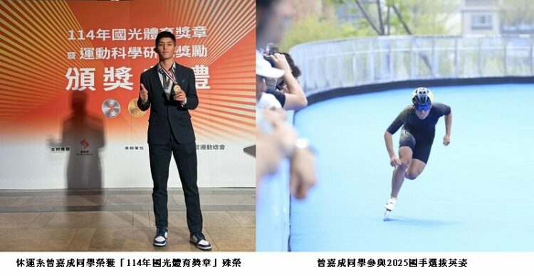 樹德科技大學休閒遊憩與運動管理系(休運系)三年級學生曾嘉成,憑藉於競速溜冰領域的亮眼表現,榮獲「114年國光體育獎章」殊榮,不僅為個人運動生涯寫下重要里程碑,也為校爭光。他從7歲開始追尋「成為國手」的單純夢想,一路走向世界盃頒獎台,展現運動員永不放棄的精神,更成為校內師生的激勵典範。