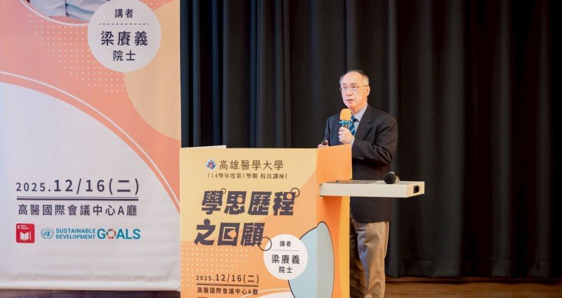 高雄醫學大學今(16)日舉辦校長講座,邀請中央研究院院士梁賡義蒞校演講。梁院士以「學思歷程之回顧」為題,回顧自身從數學跨足生物統計與公共衛生、再投身高等教育與公共服務的生命歷程,並以深厚學養與豐富實務經驗,勉勵師生在快速變動的科技時代中堅守獨立思考與價值判斷,兼顧專業精進與社會責任。
