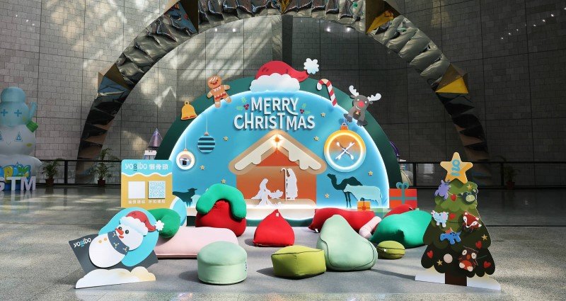 今年1F大廳以大型拱形TRUSS聖誕主視覺為核心,結合柱子上的聖誕老公公高掛迎賓,搭配雪花全息投影裝置,隨光影流轉閃耀空間,成為民眾爭相拍照的熱門打卡點。現場更設置Yogibo懶骨頭休憩區,柔軟多樣的造型座椅,讓親子家庭在參觀之餘,能自在坐臥、伸展放鬆,享受片刻悠閒時光。不少學校團體也特地安排學生到館參訪,在聖誕布置前留下歡樂合影。