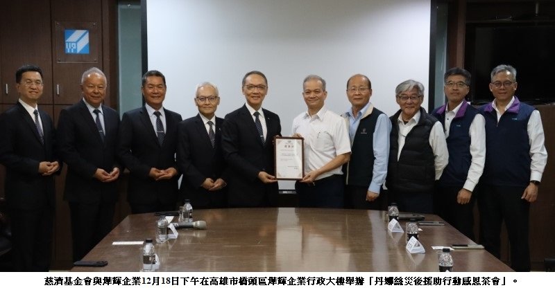 時值歲末,慈濟基金會與燁輝企業今(18)日下午在高雄市橋頭區燁輝企業行政大樓舉辦「丹娜絲災後援助行動感恩茶會」,感恩燁輝企業於丹娜絲颱風重創臺灣南部之際,及時支持慈濟災後援助行動,並回顧共同成就的善行援助行動,展望未來持續合作的希望。