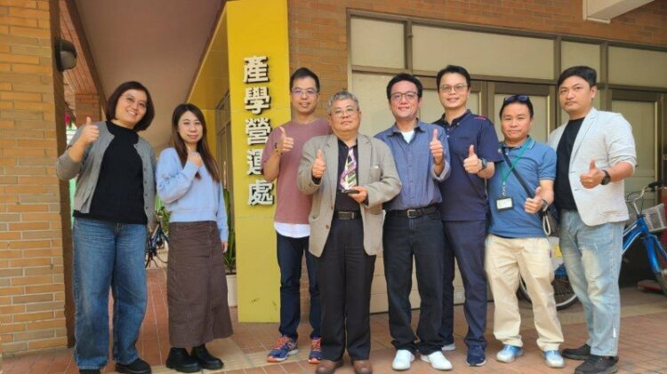 圖/高科大產學長謝其昌(左四),帶領輔導團隊接受園管局「綜效卓越團隊」獎肯定,特別在AI、低碳、自動化的導入成績斐然,展現高科大機械領域的堅強輔導實力。其中一個高軟園區輔導案例「機械手臂式加盟」(有鳴與十九甲雞排聯名)在今年台北國際加盟展推出97套的漂亮成績。