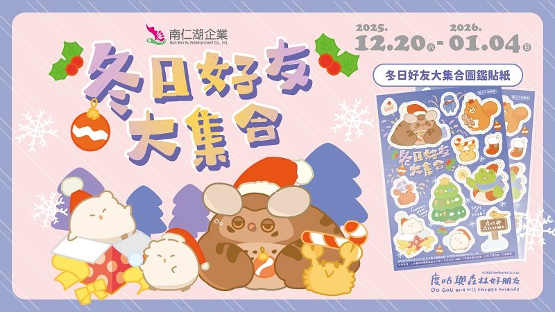 今年冬天,南仁湖育樂旗下企業:中壢、湖口、古坑服務區、大武之心南迴驛及小墾丁渡假村將於12月20日(六)至2026年1月4日(日)舉辦「冬日好友大集合 一起迎聖誕.歡樂跨年活動」,帶來限量贈品與可愛互動展,讓親子與家庭旅客感受節慶氣氛。