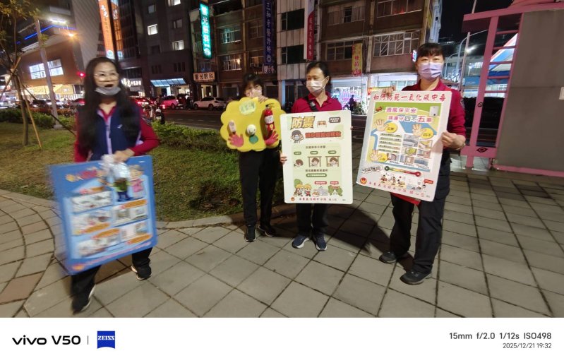 屏東市義消隊員,在燈火通明,滿是人潮的中山公園,張掛海報,逢人就解說,提醒防勳。路過的遊客,很少觀看或是提問,這可以看出,一旦發生災難,許多大意的民眾,無法及時做出正確反應,不是傷就是亡,這些本來可以防患甚至當下阻斷的悲劇。