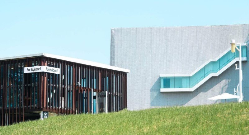 陳局長表示,Funkyland座落於味覺體驗區草坡制高點,介於綠美圖與台中國際會展中心之間,視野遼闊、位置優越,是園區中極具辨識度的新亮點。無論從空中花園、會展中心二樓平台、經貿五路跨橋,甚至舊機場跑道草坪遠望,都能看見其獨特建築線條,宛如自然地景中的現代藝術。自11月2日配合「台中市民野餐日」試營運以來,已吸引不少市民與網紅造訪,成功為中央公園注入嶄新的休憩與消費動能。
