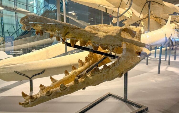 近期屏東國立海洋生物博物館全新推出《重返海洋》特展,特別向國立自然科學博物館借展珍貴館藏,展出一件距今約4,000萬年前的重要化石「龍王鯨」。這次展出的為龍王鯨(Basilosaurus)頭骨化石,產自摩洛哥,為始新世(Eocene,距今約3至4千萬年)的海洋巨獸代表物種,亦為鯨豚演化史上關鍵過渡階段的重要證據。透過這件珍貴化石現身說法,帶領觀眾回到鯨豚由陸地重返海洋的關鍵演化時刻,目前於海生館世界水域館大廳展出,展期至12月26日(五)止。