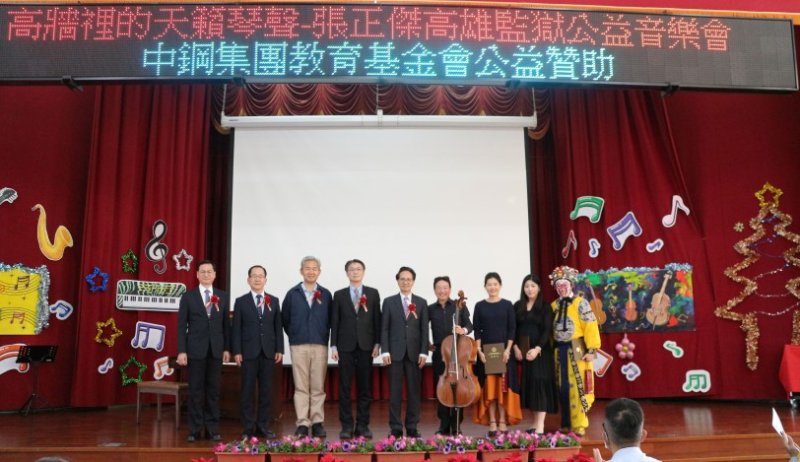 中鋼集團教育基金會(簡稱中鋼基金會)長年深耕社會公益,昨(23)日再度攜手國際知名大提琴家張正傑老師,於高雄大寮監獄舉辦「監獄音樂會」,以優雅動人的美妙旋律,有如和煦的陽光溫暖在場每位收容人的心靈。當天活動,臺灣高等檢察署高雄檢察分署朱家崎檢察長、法務部矯正署林憲銘署長、高雄地檢署黃元冠檢察長、高雄監獄林明達典獄長與中鋼公司黃茂源助理副總一同出席欣賞。