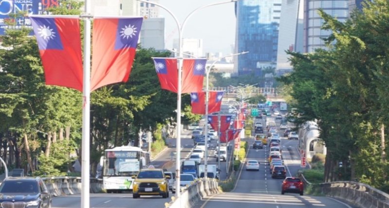 圖/台灣大道為台中市最重要的主要道路-市府在沿線掛滿國旗-為台中市街區帶來熱鬧氣氛