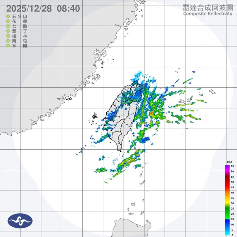 天氣方面,水氣逐漸減少,但北部、東半部地區及恆春半島降雨機率仍高,其中基隆北海岸、宜蘭地區有機會發生局部大雨,其他地區為多雲。此外,若溫度及水氣配合,3500公尺以上高山有機會出現零星降雪、下冰霰或結冰,前往高山請留意路面濕滑及結冰。